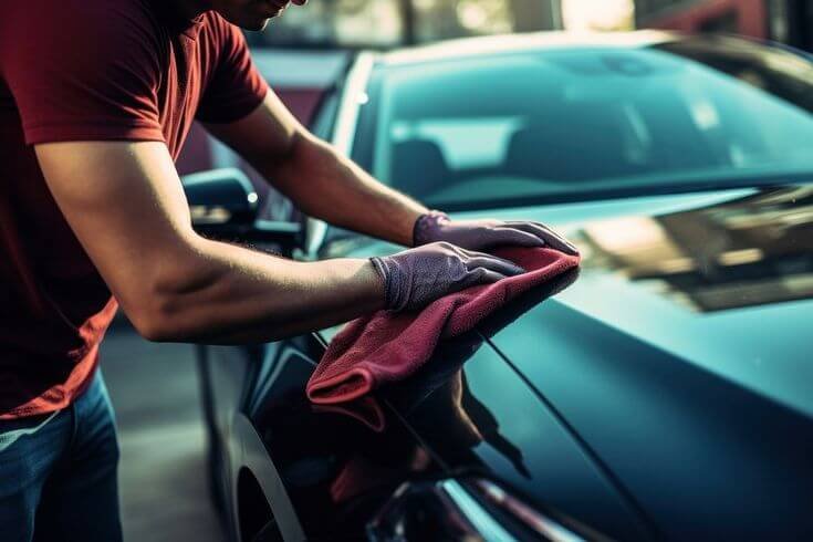 The vehicle is carefully dried using clean microfiber towels to prevent water spots and streaks.